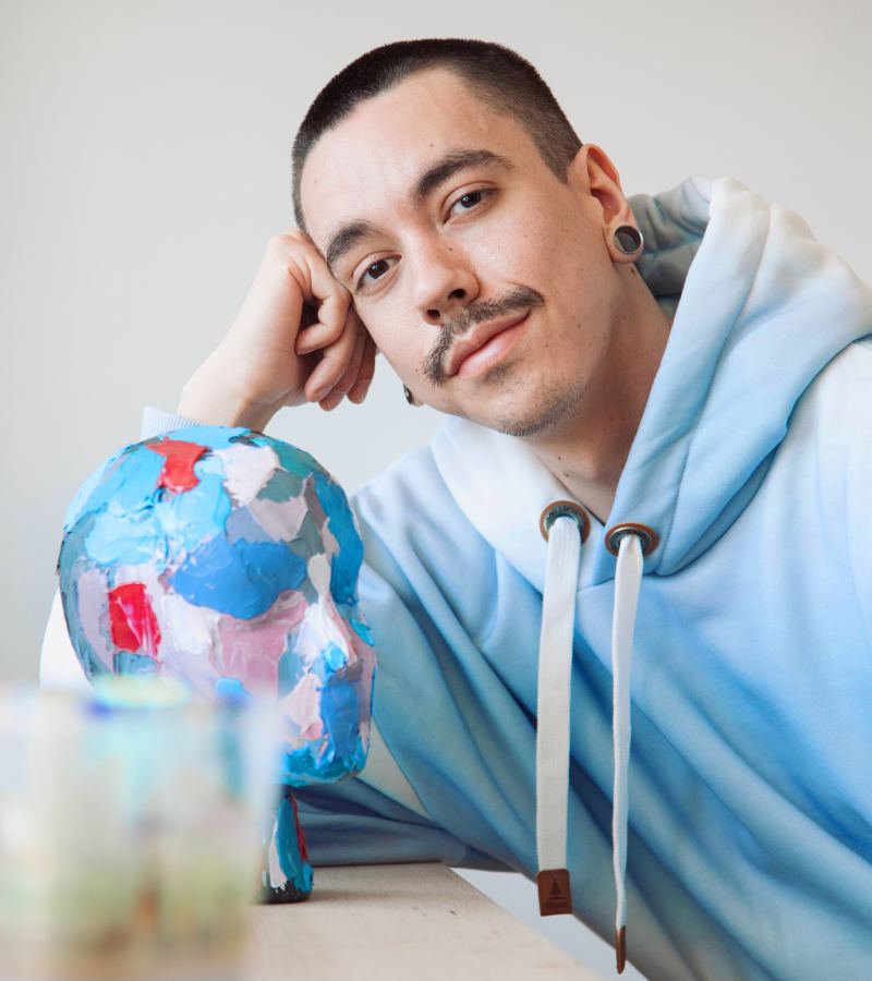 Tyler Burey is a multidisciplinary queer Indigenous artist originally from Northern Ontario. A graduate of OCAD University,Tyler uses his art to navigate the complexity of queer life and the layered experience of finding belonging within a newly discovered community. Through sculpture, installation, drawing, painting, and photography, he seeks to create meaningful representation — for himself, and for the broader queer Indigenous community he continues to grow into. Working with materials such as acrylic, beadwork, paint, and light, Tyler’s work merges vulnerability and resilience, often blurring the line between celebration and survival.